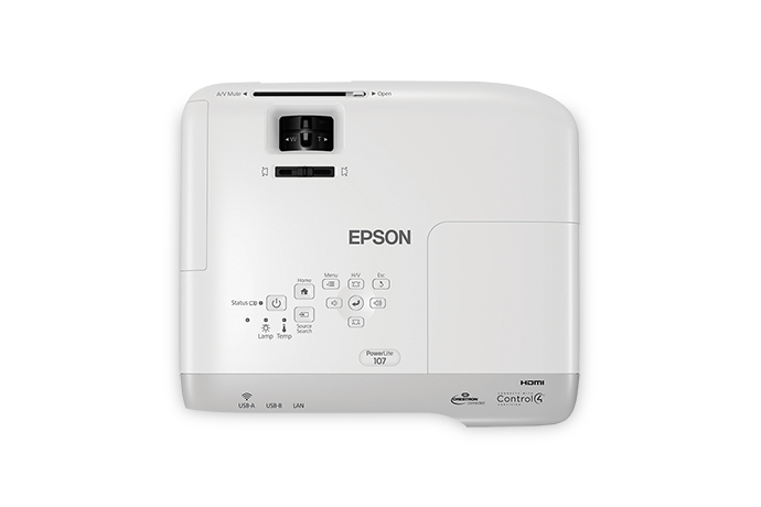 PowerLite 107 دارای اتصال RJ-45 برای مدیریت پروژکتور از راه دور، ارائه از طریق شبکه و موارد دیگر است.